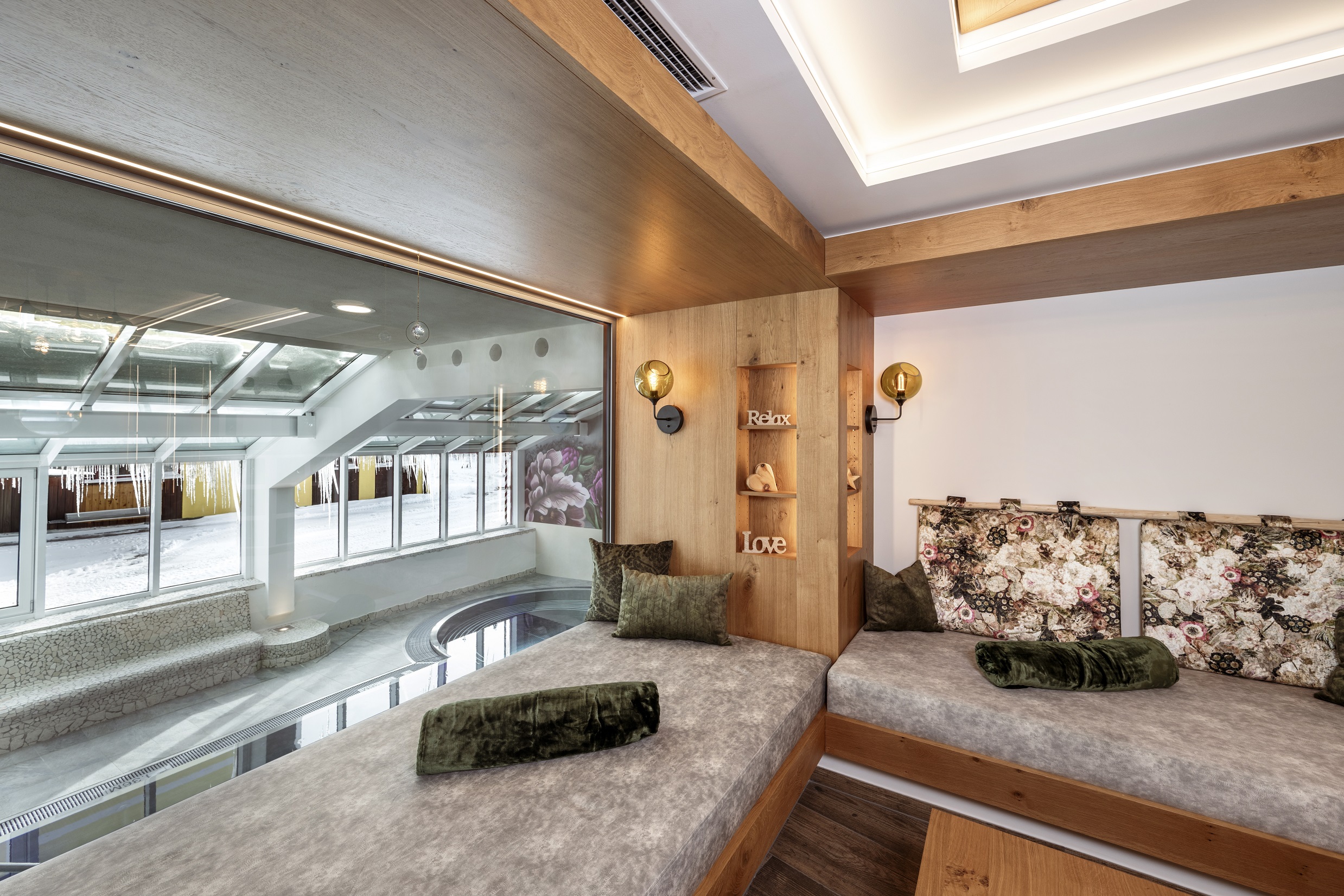 Renovierung des Hallenbades und Erweiterung des Wellnessbereichs. Neue Wellness-Lounge im Hotel Obertauern!